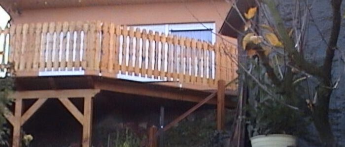 Holzlaube mit Keller, Strom- und Wasseranschluss, Terrasse sowie Obstbäume vorhanden.
